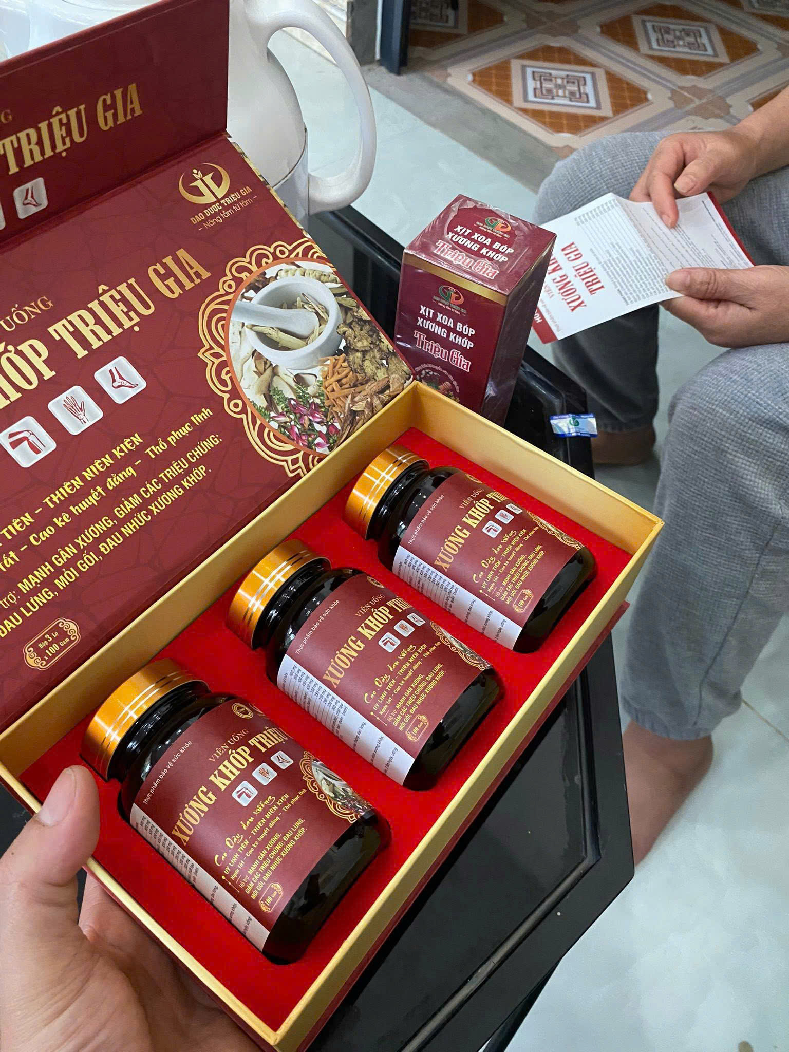 Sản phẩm được chiết xuất từ các loại thảo dược quý như: KÊ HUYẾT ĐẰNG, THIÊN NIÊN KIỆN, Uy Linh Tiên, Ngưu Tất, Thổ Phục Linh,…